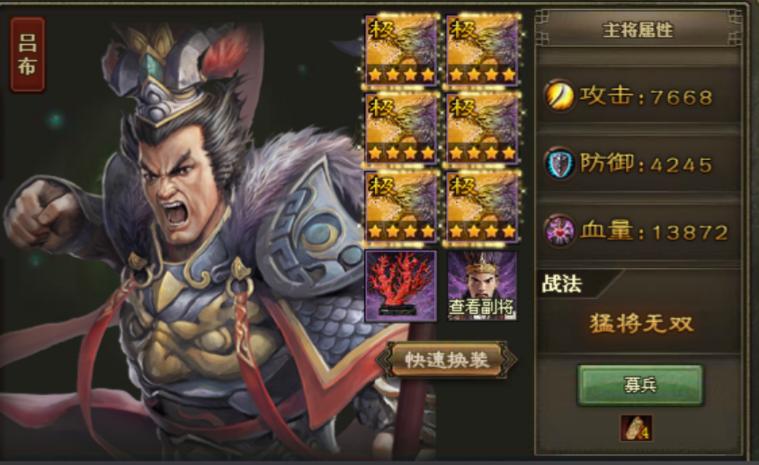 吕布在攻城掠地中是一位典型的高爆发输出武将,他自带高额的基础攻击与暴击加成,主动技能能够瞬间对敌方造成大量伤害,但同时也存在生存能力偏弱的问题,容易被敌方集火秒杀。因此在天赋加点时,不能只关注攻击属性,需要综合考虑输出和生存的平衡,确保吕布