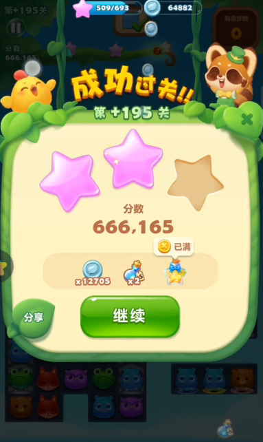 通关的关键在于精确的开局操作,第一步的走法直接决定了后续局面的发展。在关卡开始后,玩家应当优先观察并移动画面中部靠下的那个蓝色河马图标,利用其形成直线消除特效来击碎初始的冰块。这一步至关重要,因为正确的开局可以迅速打开下方的活动空间,为后续