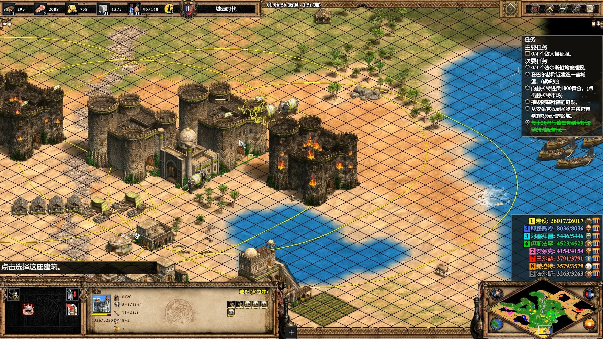 建筑摆放也有讲究,城堡内部要留出足够空间调兵,别塞得太满。城门附近放几个箭塔或炮塔,再摆点轻步兵守着,敌人想硬冲就得掉层皮。外围的资源点也要用防御工事保护起来,比如在金矿和伐木场旁边修个小塔,防止敌人偷咱们的经济。如果发现对手想快攻,赶紧拉农民围家,用木栅栏把关键区域圈起来,拖到城堡时代就好打了。