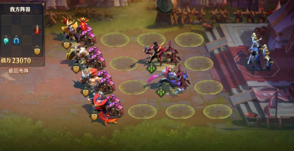 步兵与盾兵仅能布置于前两格,弓手与谋士限定在后两格,而重骑与轻骑可灵活部署于1-6格任意位置。这种空间限制要求玩家必须精准分配武将站位,例如将高输出弓手置于最后排以保证安全输出环境,同时利用骑兵的机动性针对敌方薄弱环节发起突袭。张辽的技能收益最大化需将所有武将集中于一列,形成纵向火力压制,此策略尤其适用于对抗以弓手为核心的敌方阵容。