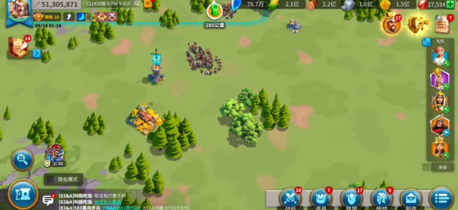 迷雾里的村庄会赠送农业科技,山洞则能拿到经验书和钥匙道具,这些都能为后续发展铺路。记得时刻保持侦察兵在外探索,优先解锁资源点和特殊地点。联盟选择也很重要,尽量混进排名靠前的联盟领箱子奖励,但要注意避免被敌对玩家盯上。资源采集别停,下线前把部队派去采集点,回来就能收获满满。