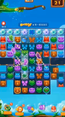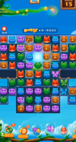 游戏的核心机制是通过滑动手指让三个及以上同色小动物横竖相连消除,但高效通关的关键在于理解特效生成规则与消除顺序的优化。四连消除会产生直线特效(横向或纵向),五连消除可生成魔力鸟,而L型或T型排列(五个色块)会形成范围爆炸特效。不同特效组合能产生更强大的清除效果,例如魔力鸟与任意色块交换可消除全屏同色动物,两种相邻特效交换会触发范围更大的连锁反应。
