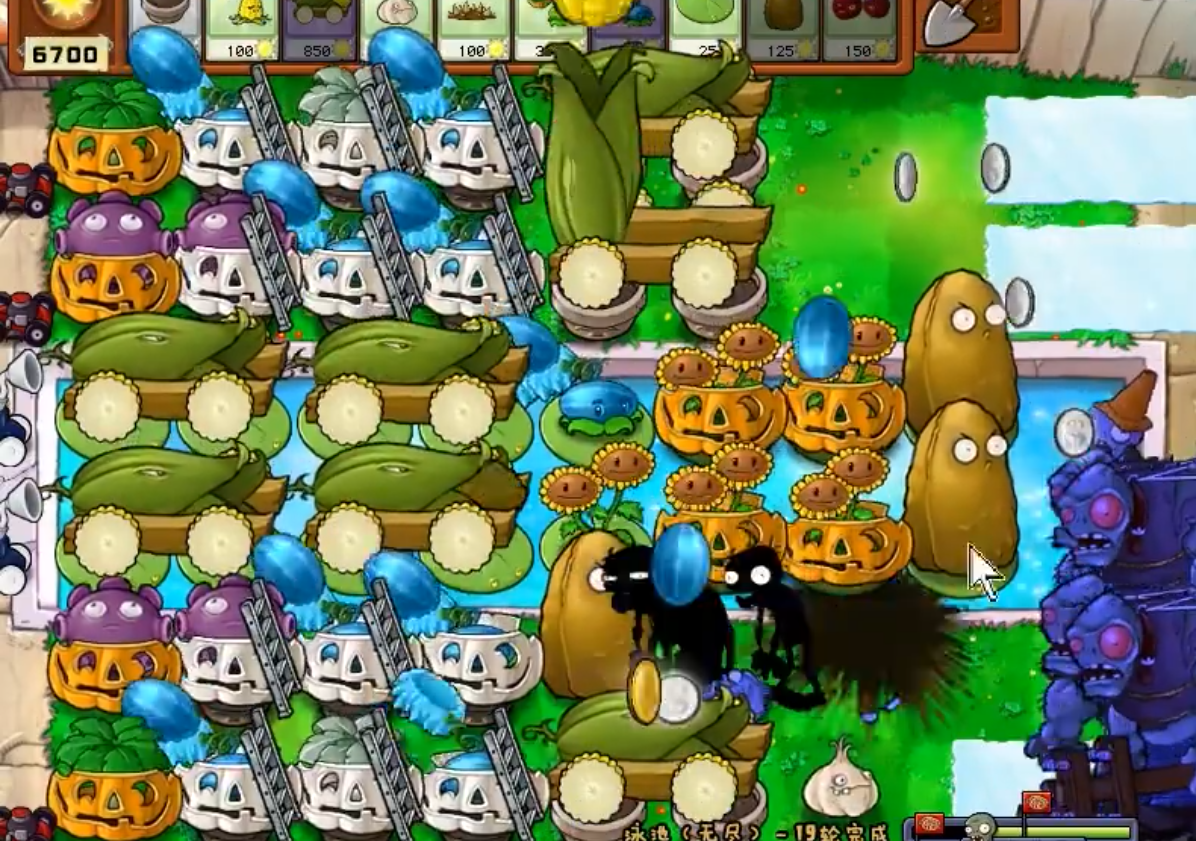 开局可得稳着点儿来,先种满两排向日葵保证阳光供应,水池里也别忘放睡莲种向日葵。前期用土豆雷和窝瓜对付零散僵尸,攒够阳光赶紧上玉米加农炮,这可是无尽模式的核心武器。水路记得放忧郁菇防潜水僵尸,陆路前排摆上南瓜头和高坚果,冰西瓜减速效果绝对不能少。阵型成型后主要靠玉米炮循环轰炸,注意保留寒冰菇和樱桃炸弹应对突发状况。