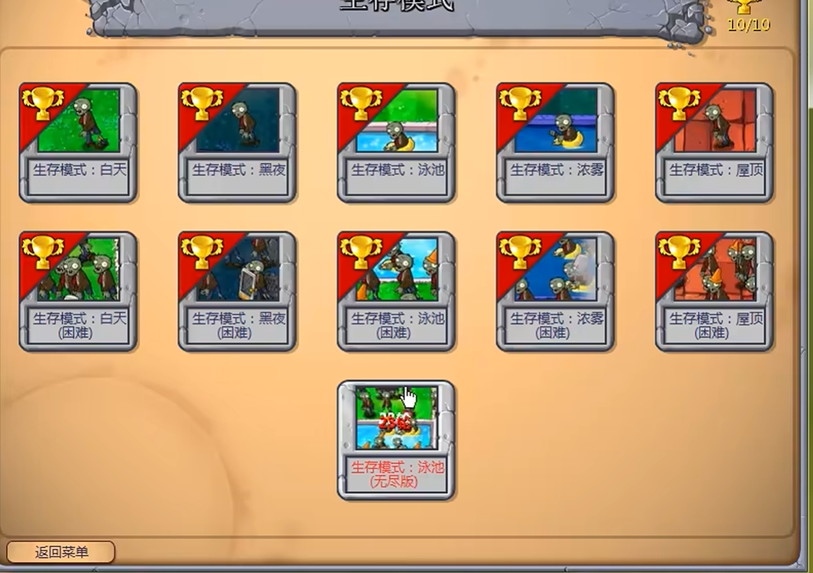无尽模式可是咱们老玩家最爱的挑战玩法啦,想找到它得先通关冒险模式50关,然后解锁生存模式,把前面10个生存关卡全打通,最后那个标着Endless的选项就是无尽模式的入口啦。记住要在主界面点进生存模式才能看到哦,白天黑夜屋顶泳池各种地图都能选,不过泳池地图最适合长期作战呢。