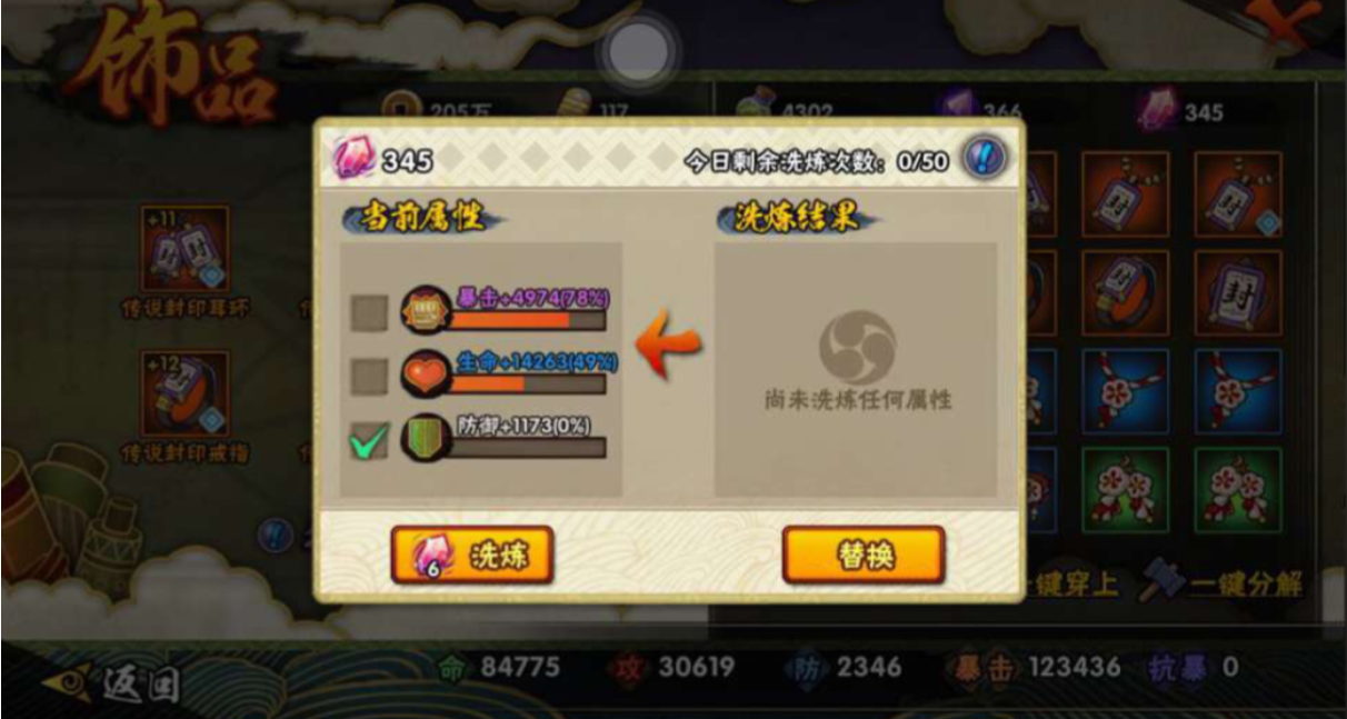饰品洗练方面,暴击属性对战力加成最高,其次是攻击和生命值。装备强化到一定等级后开启雕纹系统,消耗洗炼石可重置属性品质,紫色为最优属性。首领副本和组织商店是获取洗练材料的主要途径,建议优先保留暴击、攻击类属性。神器强化同样影响全局属性,需同步投入忍玉或金币进行升级,解锁额外雕纹槽位以进一步提升战力。