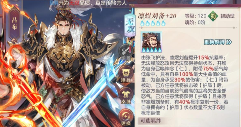 刘备作为三国志幻想大陆中的核心辅助武将,凭借其群体治疗和控怒能力,在多种阵容体系中占据重要地位。该角色定位为神将品级,技能机制围绕团队续航与战术干扰展开,94%攻击力的群体治疗配合五星后最高40%的治愈加成,使其成为持久战中的关键角色。桃园结义羁绊与关羽、张飞同队时,触发阵亡队友增益效果;群雄逐鹿羁绊则能跨阵营提升团队攻防属性,这种多维度加成让刘备具备极强的阵容适配性。