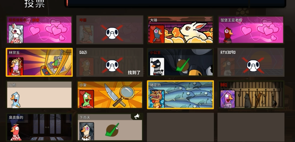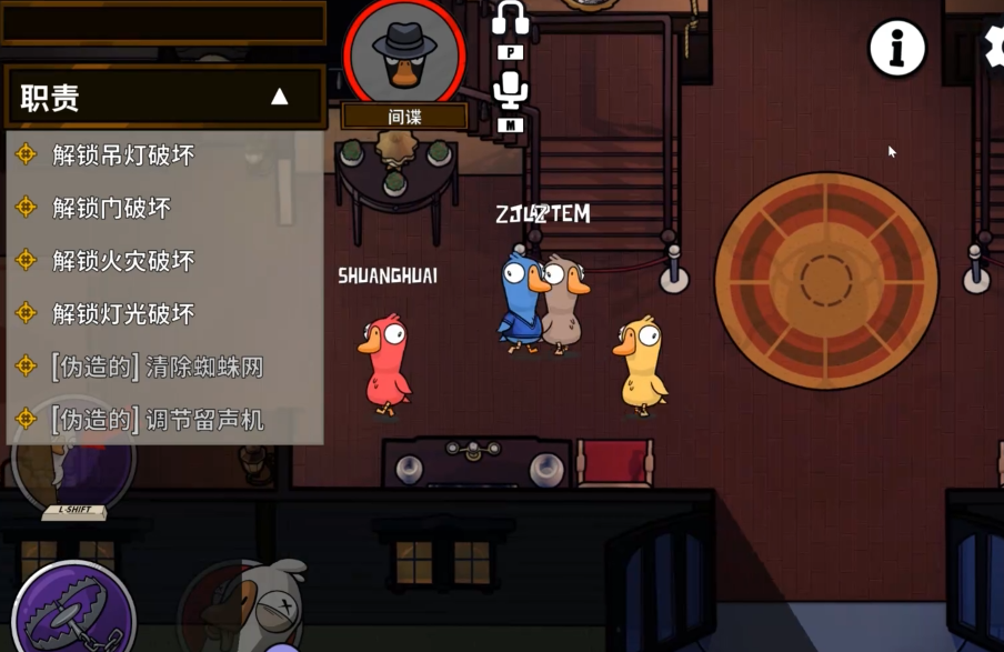 间谍鸭的技能机制决定了其战术重心应放在会议阶段。前两回合是使用技能的黄金期,因初期玩家信息匮乏且投票分散,可趁乱单独投票目标角色以查验身份。需注意投票行为本身不会暴露间谍身份,但查验结果需等待下一轮会议才能生效,期间应优先完成击杀任务而非过度追求信息。若查验到关键角色如警长或加拿大鹅,需及时与队友共享情报并制定针对性击杀策略。