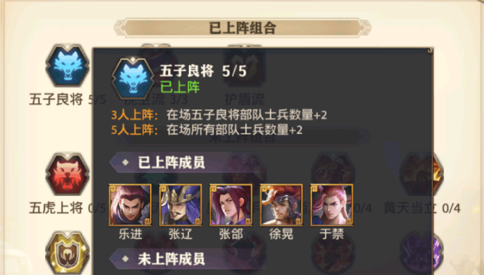 五子良将阵容的核心在于张辽、乐进、于禁、徐晃、张郃的协同作战,搭配军师时需要优先考虑增强部队生存与输出能力的组合。荀彧是最优选择,其技能提供回血、减伤和护盾效果,能显著提升五子阵容的持续作战能力。貂蝉虽为氪金军师,但若能获取,其控制与增益效果可进一步强化阵容爆发力。平民玩家则推荐使用张宝,通过召唤单位分担伤害,弥补五子阵容前排承压不足的缺陷。