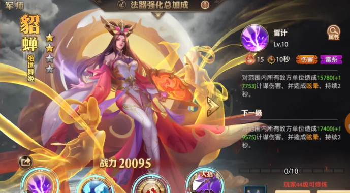 资源分配上,优先提升荀彧的固本培元技能等级,其次是貂蝉的魅惑或张宝的撒豆成兵。装备选择以增加防御和效果命中为主,确保军师技能稳定触发。五子主将的培养顺序应为张辽>张郃>乐进,其余成员保持基础强度即可。注意保留足够资源用于军师突破,其天赋加成的范围效果对整体提升显著。