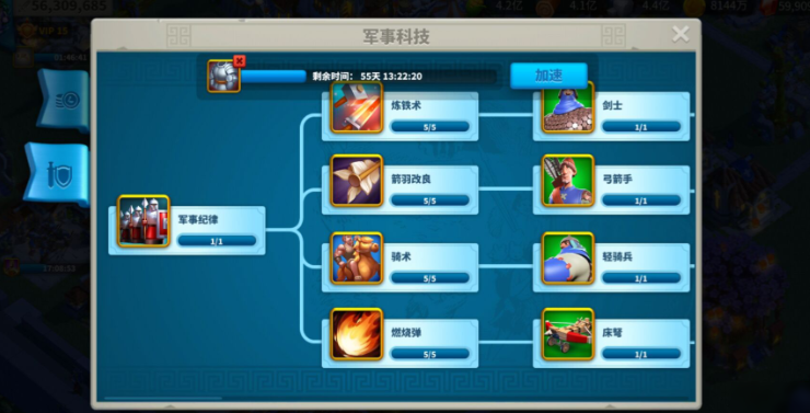 提升产量最直接的方法是升级经济类建筑,比如农场、木材厂、采石场和金矿。这些建筑等级越高,每小时产出的资源量就越多。尤其是当它们达到25级后,产量会有质的飞跃。光靠建筑产出还不够,咱们还需要搭配科技研究来进一步放大收益。在学院中优先研究灌溉术伐木术等经济类科技,能显著提高资源采集和生产的效率。