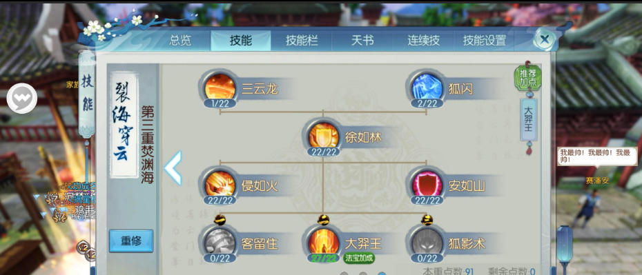 烈山作为诛仙手游中的远程输出职业,其技能加点需要围绕核心输出与控制能力展开。优先点满客留住作为核心技能,兼具伤害、控制和辅助效果,同时搭配安如山侵如火和狐闪提升爆发能力。由于烈山自身生存能力较弱,天书选择需侧重弥补防御短板,建议辅修天书3增强生存,尤其在跨服封神等PVP场景中更为实用。