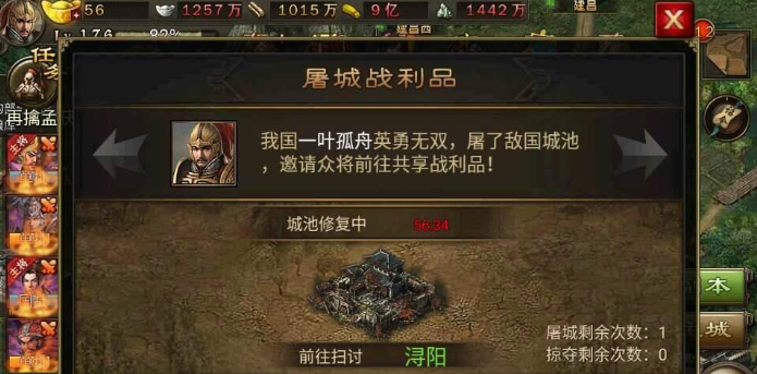 屠城奖励分为首次屠城和合力屠城两种。首次屠城的玩家会拿到觉醒石和大量资源,而后续参与合力屠城的小伙伴则能延长城池废墟时间,同时获得额外宝石和粮食。战利品数量会随着屠城次数增加,但每座城最多只能被屠四次,前三次奖励逐步提升,第四次奖励最丰厚。