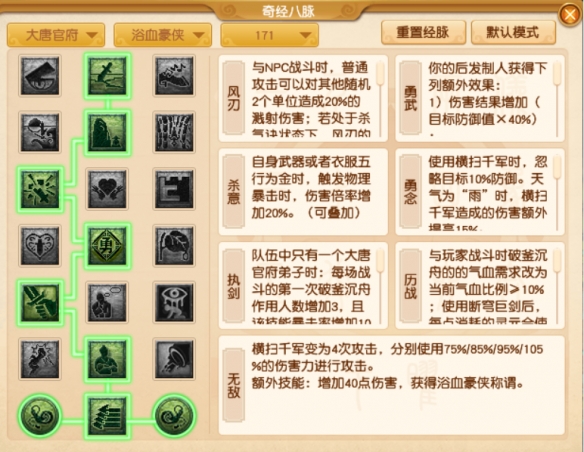 玩转大唐官府的奇经八脉,关键在于平衡输出、控制和生存能力。暴力输出流是最受欢迎的选择,适合喜欢高爆发的玩家。第一层优先点风刃,它能增加溅射攻击的目标数量,让日常任务清怪效率大幅提升。第二层选择长驱直入,忽视目标保护状态的同时还能降低对手的治