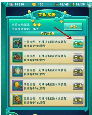 五星宝卷的兑换奖励非常丰厚,能随机开出五星装备或者法术,比如金色武器、防具或者强力的群体技能。不过兑换结果是随机的,所以可能需要多攒几个宝卷才能拿到心仪的装备。如果运气好,一次就能抽到极品,但就算没抽到最想要的,五星装备和法术本身价值也很高,可以用来强化主力护法或者分解成高级材料。
