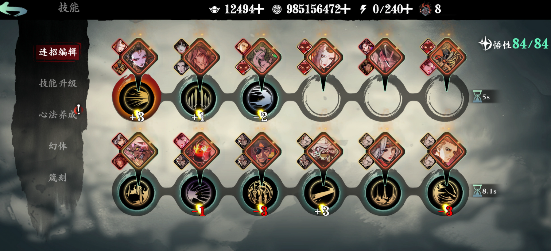 心法系统深度养成包含升级、突破和升华三个阶段。主力心法需优先升至60级并通过吞噬其他心法突破,解锁高阶绝技。升华形态需消耗特定心法激活,能提升羁绊效果并改变技能特效。暗夜飘香等控制型心法适合PVP场景,万魔之魂等暴击加成心法侧重PVE输出,需根据玩法方向选择性培养。心法经验可通过剑谱副本获取,但稀有剑谱掉率较低需长期积累。