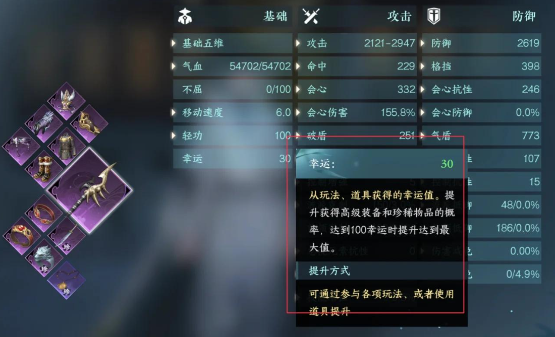 幸运值影响角色获取稀有物品概率的关键属性,其核心作用体现在装备掉落、特技打造、内功经验获取等多个方面。当幸运值达到100时,效果将达到最大值,显著提升玩家在游戏中的收益效率。这一属性并非固定不变,而是可以通过多种途径进行提升,包括技能学习、主线剧情奖励、趣味玩法等。