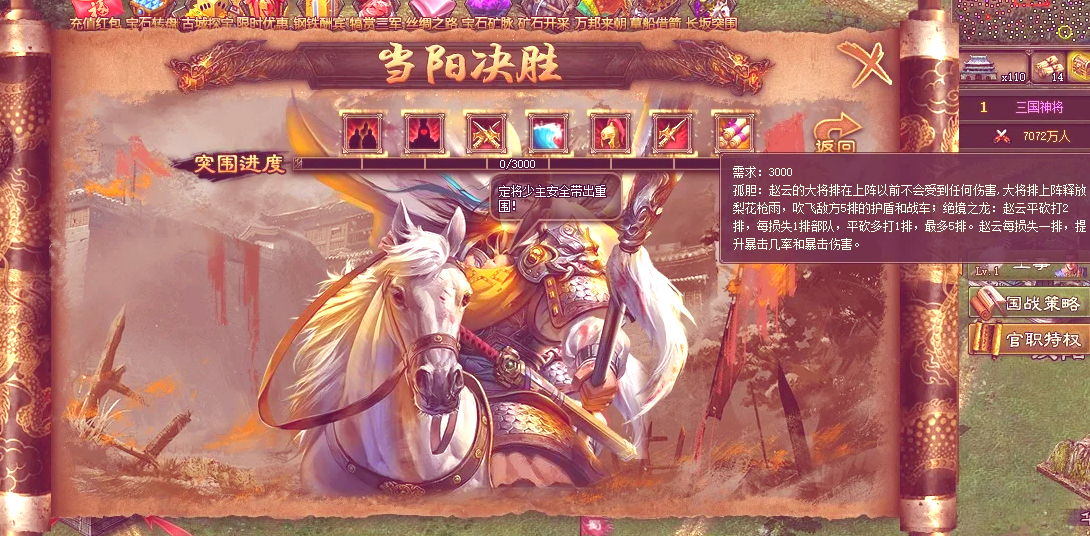 借兵系统在81级后解锁,每日免费借兵次数可大幅提升战斗效率,尤其在攻城时能减少兵力损耗。术士工坊升级后,借兵数量进一步增加,但需注意木材消耗。副本推图是经验与资源的双重来源,高难度副本如铁血单骑救主需搭配战法装备和强攻策略,确保一次通关以避免资源浪费。珍宝系统初期消耗较高,但西域锦囊出现后性价比提升,可逐步投资以增强长期收益。