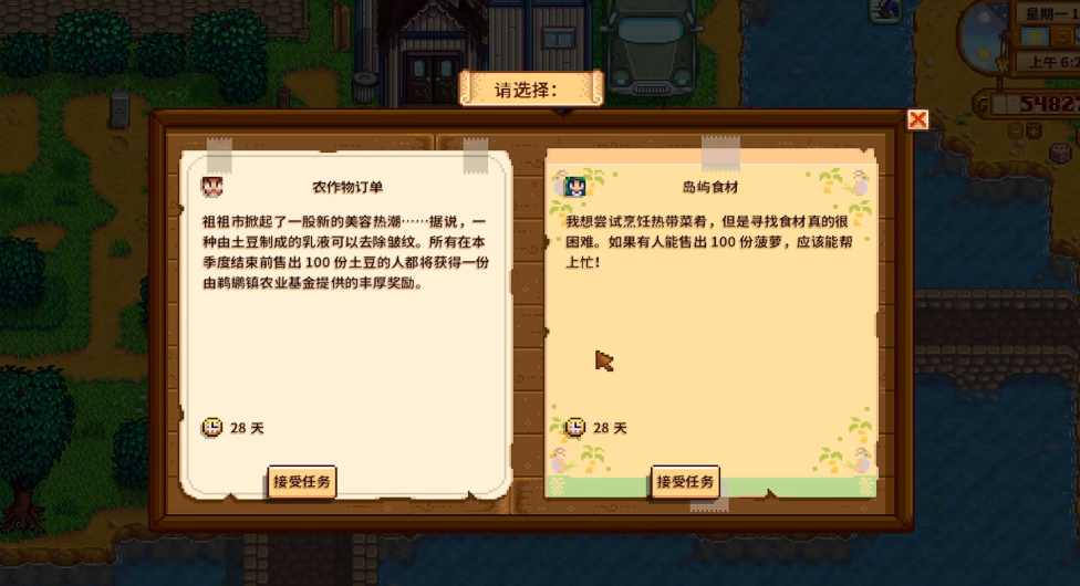 交友指南任务是前期非常重要的引导任务之一,它能帮助大家快速熟悉与村民互动的方式。这个任务的核心要求是给任意一位村民赠送一份礼物,完成后可以获得100金币奖励。需任务最后一位村民威利需要在第二天才能拜访,找到他后随便送个礼物就能轻松完成任务。威利最喜欢的礼物包括鲶鱼、钻石、金锭等,但如果手头没有这些,送其他普通礼物也能顺利推进任务进度。