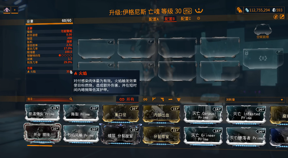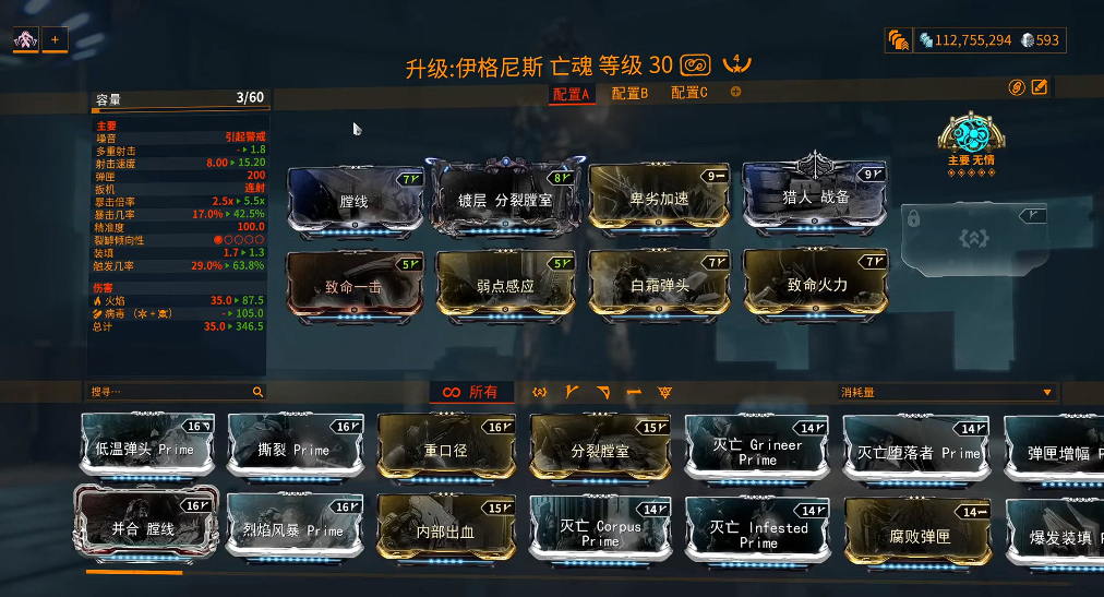 伊格尼斯亡魂作为星际战甲中性能优越的火焰喷射器,其获取途径主要围绕氏族活动奖励、虚空商人交易和玩家间流通三种方式。该武器基础伤害35点,暴击几率17%,触发几率29%,弹匣容量200发,整体性能显著优于普通版伊格尼斯,段位要求为9段。武器设计图仅限特定氏族化学实验室复制,或通过特殊活动渠道获取,属于相对稀有的装备资源。