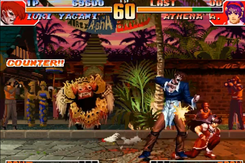 从战斗性能来看,黑色八神庵的招式判定更强,例如八稚女等必杀技的伤害和范围均有提升。但其行动模式更激进,部分收招硬直时间延长,对玩家的预判和连招衔接要求更高。建议在熟悉普通八神庵的基础连招后,再尝试使用暴走形态,以避免因操作失误被对手反击。暴走状态无法通过能量豆取消,需谨慎选择释放时机。