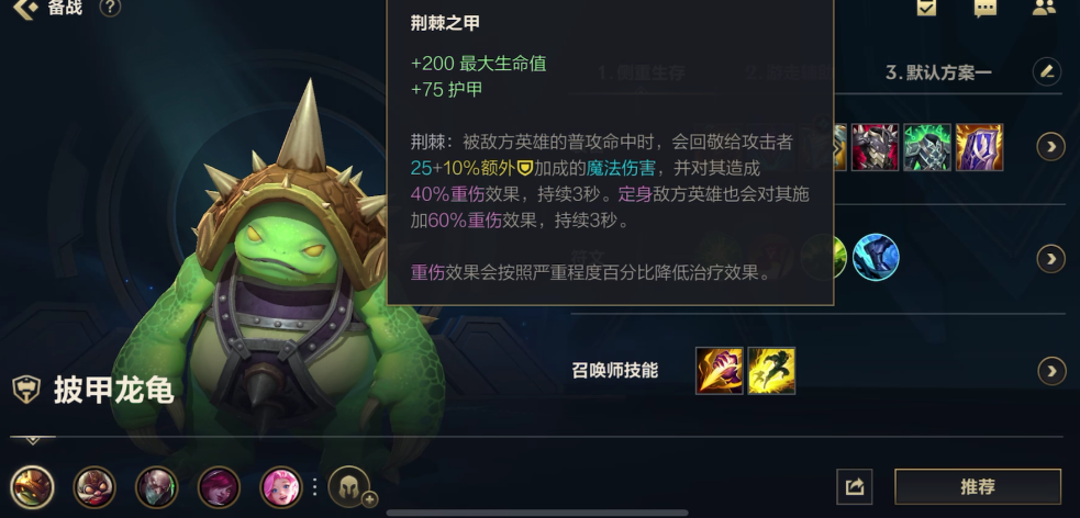 符文搭配方面,余震是龙龟的主流选择,触发后能大幅提升双抗并造成范围伤害,完美契合其控制技能。副系符文通常选择弱点、调节和探路者,弱点能增强团队对受控目标的集火效率,调节提供中后期双抗加成,探路者则优化野区与河道的移速。需龙龟对蓝耗较为敏感,前期需合理规划技能使用频率,避免因缺蓝影响节奏。