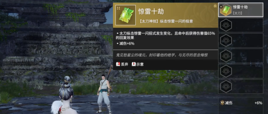 惊雷十劫的优势在于灵活性和回复效果。命中敌人后能回复一定比例的伤害值,续航能力非常不错。推荐在敌人血量较低时使用,既能收割残血又能回血。这招的突进距离比普通攻击远,对付喜欢拉扯的对手有奇效,但别盲目追击,小心被反打。