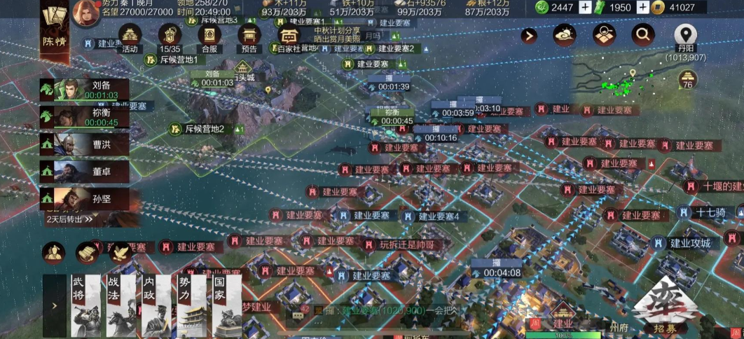 后期想要稳固占领的地盘,记得及时建设要塞和分城。分城需要八块相邻土地才能建造,不仅能增加资源产量,还能作为前线据点。被占领的领地记得派部队驻守,否则容易被敌人反扑。如果发现敌方集结兵力反攻,果断放弃边缘地带收缩防线,集中力量守住核心区域。优先占领资源丰富的关键地块,逐步压缩敌方活动空间。多和盟友配合,通过夹击或围困瓦解敌方防御。