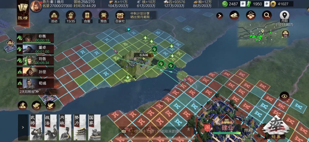 占领对面的领地,首先得确保咱们的领地与目标地块相邻。点击目标地块后选择出征,系统会提示能否胜利。如果显示兵不血刃或损失在所难免,说明胜算很大;若是敌军兵力强盛,最好先提升实力再尝试。出征会消耗武将20点体力,记得提前调整好兵力、武将和技能搭配。行军时间取决于距离和武将速度属性,前三分钟还能撤回部队。