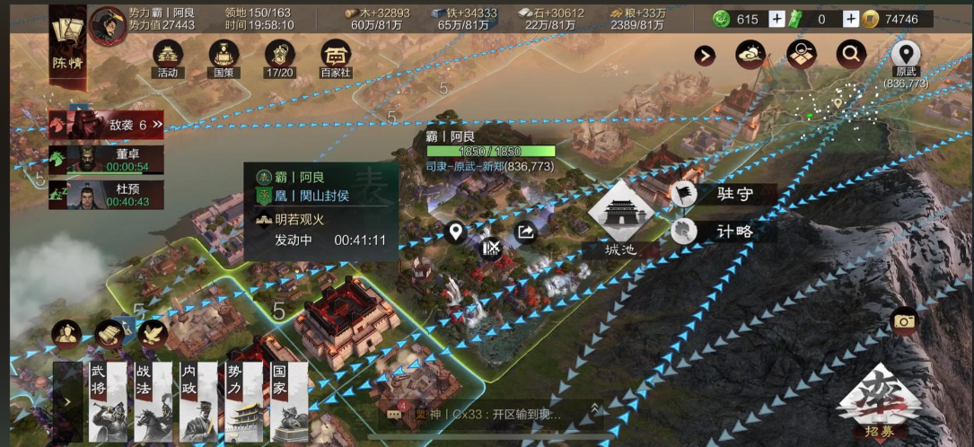 攻打敌方领地时,如果对方有驻守部队,需要先击败他们。接着面对系统守军,他们的兵力和无主土地相同。最后要将土地耐久度降到0才能占领,每次进攻降低的耐久度等于全队武将攻城值总和。如果战斗胜利但耐久没清零,这块地还是拿不下来。建议优先选择与咱们势力范围相连的敌方土地,这样出征范围会随着领地扩张逐渐变大。