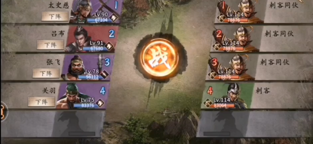 太史慈作为首发武将,建议穿戴朱雀套装,携带副将周泰。开局连续释放两次战法,快速击杀敌方第一部将,剩余两排残兵应对第二部将的战法。太史慈最后一排阵亡后,副将周泰补刀一次,随后许褚上场直接释放战法并平砍,剩余两排兵力吃下第三部将的战法。张飞作为第三武将,需在最后一排释放战法秒杀敌方副将,同时削弱刺客首领的第一排兵力。典韦作为收尾武将,需保留三排残兵和一排满兵,直接释放战法击杀首领残血。