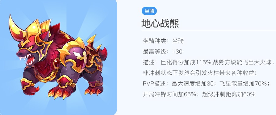 地心战熊在众多坐骑中属于那种表现非常全面的类型,不管是经典模式还是多人对战,它都能给角色带来显著的表现分加成。当赵云和地心战熊组合在一起时,得分效果会特别突出,几乎可以算是黄金搭档了。这个坐骑不光加分稳定,还能在跑酷过程中提供额外的支持,帮助玩家更容易突破高分瓶颈,尤其适合那些追求极致分数的玩家。