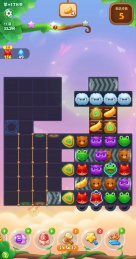 除了特效,这关对分数的要求也不低,光完成任务可能还不够,你还需要拿到足够的分数才能过关。所以分数策略也是非常重要的一环。核心就是多制造连击和利用特效进行大规模消除。每一次特效组合触发的大范围清屏,都是你分数暴涨的好机会。在有限的步数里,你要时刻想着怎么去创造这种能拿高分的机会,而不是只满足于简单的三消。有时候为了造一个关键的特效组合,哪怕牺牲一两步也是值得的。游戏里那些可爱的萌宠伙伴也能给你提供特殊的辅助能力,选一个合适的搭档,有时候能在关键时刻给你帮上大忙,甚至帮你铺平道路。 所以在挑战前,不妨看看哪个伙伴的技能更适合对付这一关的特定障碍。