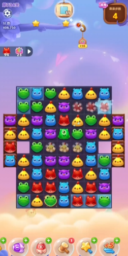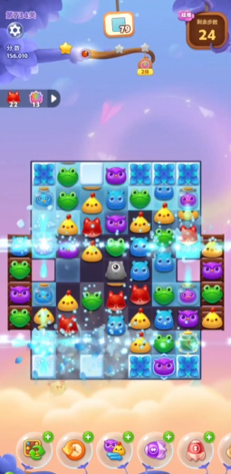 漂移板块和移动地板会不断变换位置,我们要灵活利用这些动态元素来制造连锁消除效果。当漂移板块与地图边缘形成十字形堆叠时,连消次数会大幅增加,分数也嗖嗖往上涨,有助于提高整体效率。建议从中间下方开始动手消除,这样容易引发一连串的消除反应,逐步清空中间的冰块区域。如果形成了横向或纵向特效,可以搭配使用,比如用横向特效扫过底部,清理大片区域,让动物不断掉落以创造新机会。耐心规划每一步,避免盲目移动浪费宝贵步数。