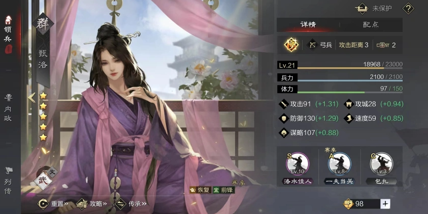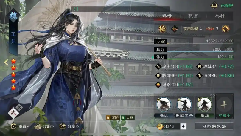 另一个值得尝试的搭配是利用他辅助高爆发的策略输出武将。比如可以考虑将庞统与王异、甄洛进行组合。在这个阵容里,王异是绝对的输出核心,她的战法文伐能造成高额的单体策略伤害;甄洛则可以携带战必断金等战法提供保护。庞统在这里的作用就是稳定地给敌方挂上减益状态,一方面降低王异受到的伤害,另一方面他技能的恐慌和诅咒效果也能和王异的爆发形成很好的伤害互补,让整个队伍的进攻更具层次感。