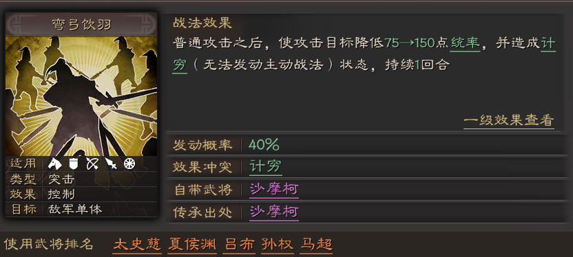 战法搭配上得优先选能破防和打断节奏的,妖星队依赖规避和治疗链,所以火攻战法像熯天炽地或火烧连营是首选,能直接烧穿藤甲减伤,同时带上技穷类战法如弯弓饮羽或威谋糜亢,专门盯着张角封技能,防止他放五雷轰顶,这招能大幅削减他们的输出,如果对方带陷阵营回血多,就上禁疗战法如挫锐或断粮,切断他们的续航能力,群攻战法如风声鹤唳也不错,能压血线还带点干扰效果,记住别和他们耗太久,妖星队越到后期越强,得速战速决。