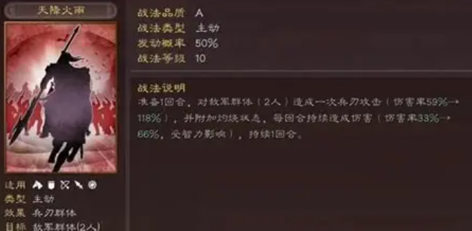 要为陆逊选择A级战法,首先需要理解他的伤害链如何运作。陆逊的输出非常依赖队伍能给敌人施加稳定的灼烧状态,这样他的火烧连营才能频繁触发爆炸性的全体伤害和震慑效果。配备一个能够提供灼烧状态的A级战法是优先级最高的选择。在这方面,天降火雨和机略纵横是两个非常实用的选项。天降火雨能够对敌军两人造成兵刃伤害并施加灼烧,虽然有一半伤害是兵刃属性,但其提供的灼烧状态是实打实的。机略纵横则能对敌军单体造成谋略伤害并施加灼烧及中毒状态,谋略伤害与陆逊的高智力更加契合。这两个战法都能有效地为陆逊铺好燃料,确保其核心技能有目标可爆。