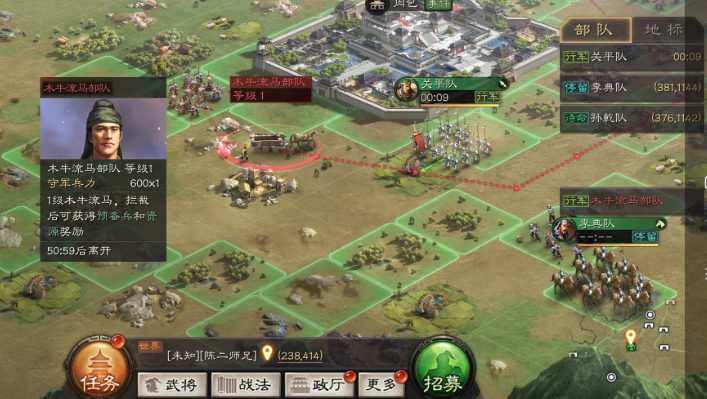 顺利升本离不开稳定的开荒推地作为资源基础。在S3赛季,选择适合的开荒队伍至关重要。主流的选择如刘备搭配张飞,虽然前期开荒速度相对稳健,但中期无需大幅转型;而像吕布、陈宫加蔡文姬这样的组合,统御值需求低,能更早成型,开荒效率很高。无论选择哪种队伍,都要遵循稳扎稳打的原则,侦查后再打地,利用兵种克制降低战损。前期重点扫荡三级地和四级地,稳步提升势力值、获取资源的同时,也为主城建筑升级提供保障,确保在爆仓时机到来前,你的资源产量和兵力能够支撑后续的快速发展。