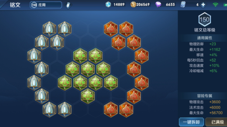 当然铭文搭配并非一成不变,玩家可以结合对局情况灵活调整。如果敌方阵容控制技能较少,可以将部分调和铭文替换为狩猎铭文,这样能提升庄周的攻速和移速,让他在追击或撤退时更灵活。如果庄周选择偏向保护型的装备,铭文可以侧重冷却缩减和生命值。若队伍需要更多功能型支持,铭文中可以适当增加移速属性来增强机动性。