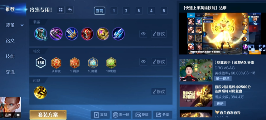铭文搭配对暴击达摩至关重要,首选百穿组合配合暴击属性。具体来说可以使用异变、鹰眼和隐匿的组合,提供物理攻击、穿透和移速。如果想进一步提升暴击概率,可以将一个异变换成祸源,这样在前期就能有机会打出意外爆发。