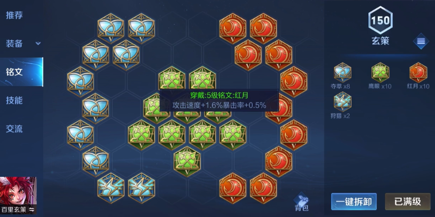 铭文方面,百里玄策主要依赖物理攻击和穿透属性来最大化伤害输出,红色铭文常选择异变或祸源来提升攻击力和暴击率,绿色铭文用鹰眼增加物理穿透,这对付坦克英雄很有帮助,蓝色铭文则可以搭配隐匿或狩猎,前者提供移速和攻击力,后者增加攻速和移速,让玄策在游走和追击时更灵活,一套常见的铭文组合是异变、鹰眼和隐匿,这样能提供较高的物理攻击和穿透,增强前期的清野和抓人能力,如果玩家更注重持续作战,也可以混搭夺萃来获得物理吸血效果,这样在野区续航和团战中都更持久。