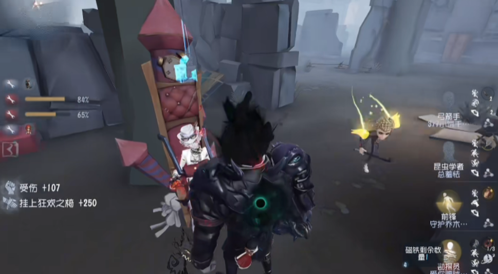 当求生者被挂上狂欢之椅时,小丑的防守策略能有效实现多杀。通常长按技能键使用冲刺击中救人位,再快速击倒被救者,防止其二次牵制。若椅子上是勘探员或咒术师等难追角色,不要贪图双倒;而如果是先知或机械师,且救人位给机会时,尽可能击倒两人。注意椅子位置,如圣心医院二楼等难追区域,应优先针对被救者而非强行贪刀。这种策略能在保证平局基础上争取胜利。