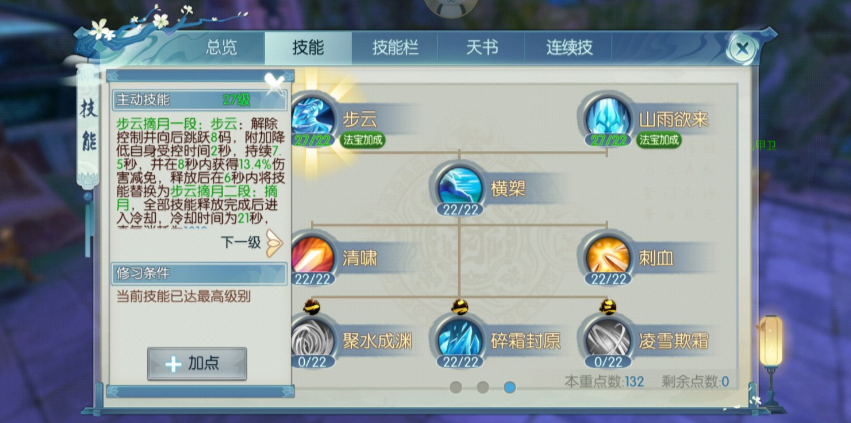 接下来就是一些需要有所取舍的技能了。像履霜冰至这种带位移和二段效果的技能,操作空间大,但在完全自动的挂机环境下,复杂连招可能发挥不好,所以建议只点一级用来调整位置或者打断,如果追求极致伤害也可以点满,但放在挂机栏里可能效果不如那几个纯输出技能稳定。而像醉月飞觞这类用于清除敌人状态的技能,在玩家对战的场景里作用大,但对着傻乎乎的怪物挂机时用处就小很多,通常可以选择不点或者只点一级,把宝贵的技能点省下来。