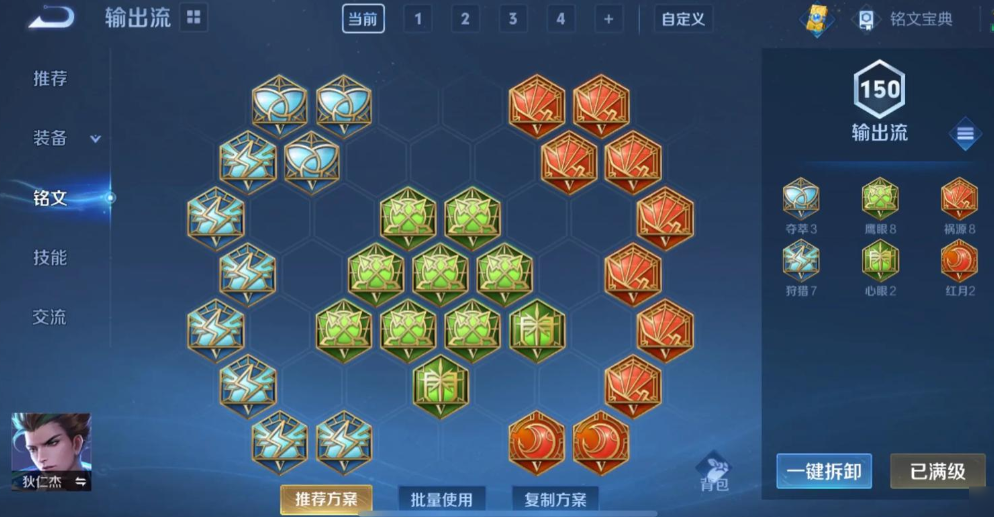 推荐使用10红月、10鹰眼、5狩猎5夺萃的组合。这套铭文提供了可观的攻速加成、物理攻击与物理穿透,确保前期对线强度。五个夺萃提供的物理吸血能增强线上续航,减少回家次数,五个狩猎则补充移速和攻速,让狄仁杰的走位更加灵活。铭文提供的暴击率与攻速阈值配合装备能流畅地支撑起全期的输出节奏。