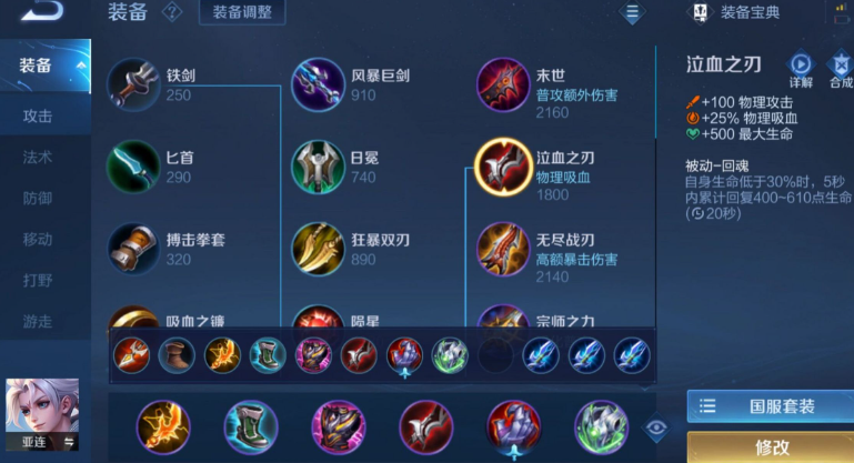 亚连的出装需要根据阵容与局势灵活选择,当前版本主流的思路包括兼顾输出与续航的双吸血法球流、侧重抗压的纯肉半输出流以及追求秒杀脆皮的暴击爆发流。其出装的核心逻辑在于平衡清线速度、输出能力与生存坦度,前期通常会选择闪电匕首与红莲斗篷的组合来快速处理兵线并建立对线优势,中后期则根据敌方核心威胁补充吸血、暴击或防御装备。没有一成不变的固定出装,关键在于英雄特性并适配对局的实际需求。