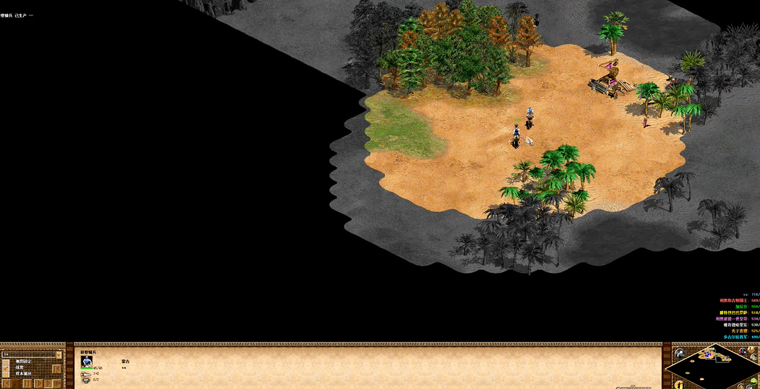 经济运营是发挥蒙古战术优势的前提,开局阶段必须充分利用狩猎加成快速建立经济基础。黑暗时代应优先采集食物,派遣侦察骑兵积极寻找并清理地图上的鹿群和野猪,这能带来显著的食物领先。木材和黄金的采集也需同步进行,以支撑后续的军事建筑与单位生产。常见的策略包括十八农民速封建或二十农民直城,后者可通过市场交易石料来快速筹集升级资源。进入封建时代后,经济应服务于持续生产军事单位的需求,尤其是保障轻骑兵或弓箭手所需的食物与木材。城堡时代及以后,需要保持稳定的黄金收入以支持蒙古突骑等核心单位的量产,同时注意平衡各资源采集比例,因为蒙古缺乏顶级的木材农田科技,经济支撑多线高级兵种存在压力。