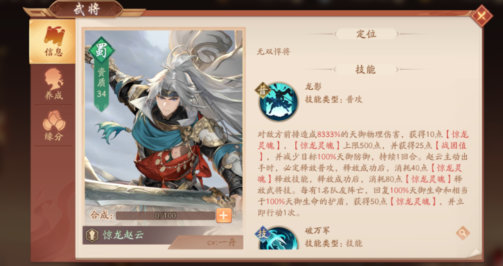 具体搭配时需针对核心武将进行配置,赵云作为核心输出,适合搭配鹏云九天战法,其行动后召唤大鹏的效果能完美契合赵云的高连击特性,最大化输出。站位上常将其置于1号位,搭配倚天剑可先手触发高概率的龙威眩晕控制。姜维则因其挑衅连击的被动,极易触发太公六韬战法,召唤玄武为团队提供抗暴与格挡增益。诸葛亮作为控场核心,战法选择需侧重提升其命中与效果命中属性,以确保群体吸怒、沉默等关键技能的稳定性,其位置通常灵活,置于1号位可先手控场。