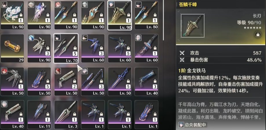 武器和声骸的搭配是提升伤害上限的关键,选择时需要紧扣其输出机制。武器方面,五星武器苍鳞千嶂(忌炎专武)是最佳选择,其高额的爆伤加成和攻击力叠加效果与卡卡罗完美契合。次选可以考虑常驻五星武器浩境粼光,它能提供攻击力加成并提升共鸣效率。四星武器中,纹秋和东落是性价比较高的选择,前者提供暴击率,后者提供攻击力。武器词条应优先追求暴击率、暴击伤害和攻击力百分比。声骸套装无脑选择彻空冥雷五件套,其两件套提供导电伤害加成,五件套效果通过重击或共鸣技能叠加导电伤害,与卡卡罗的输出模式高度匹配。主声骸(4cost位)通常推荐云闪之鳞或朔雷之鳞,它们出手快且能提供导电伤害与共鸣解放伤害加成。声骸的主词条选择上,4cost位根据面板需求选择暴击率或暴击伤害;3cost位选择导电伤害加成;1cost位选择攻击力百分比。副词条则优先追求暴击、爆伤,其次是共鸣解放伤害加成和攻击力百分比。