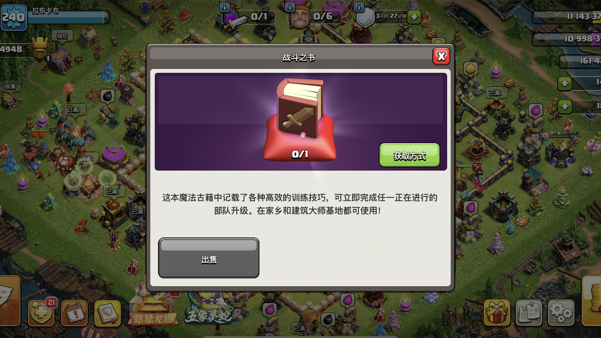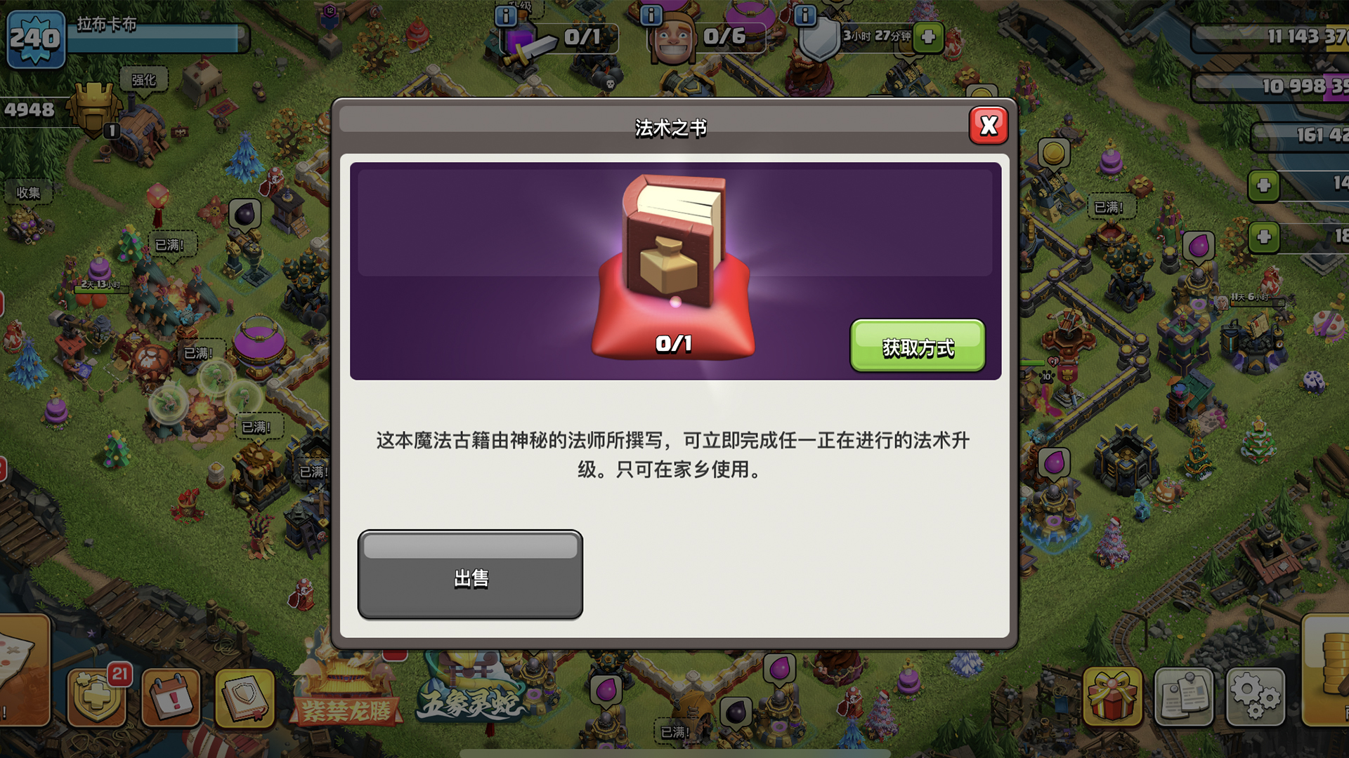 功能最全面的是万能之书,它可以立即完成任意一个正在进行中的升级项目,适用范围包括法术、英雄、建筑以及兵种训练。无论是家乡还是建筑大师基地的升级,只要项目处于进行中,万能之书都能直接搞定。这使得它成为最灵活和珍贵的魔法物品之一,能让你在关键时刻自由选择加速最急需完成的那一项升级。
