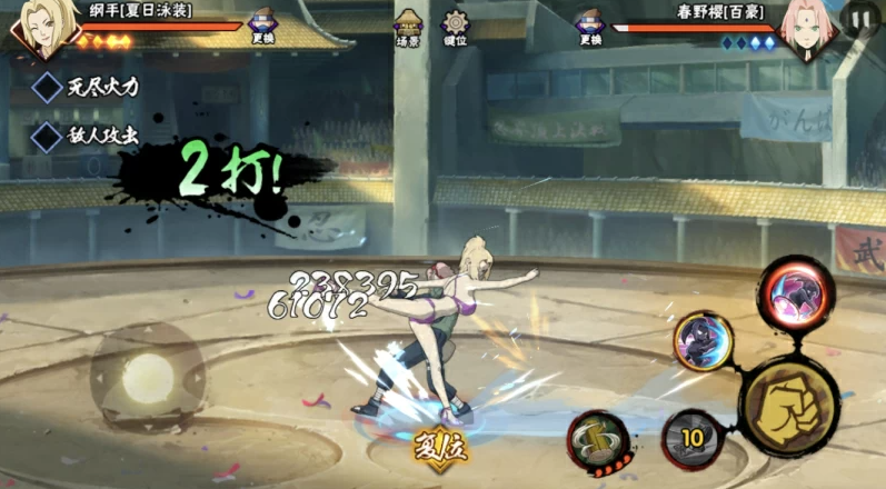 除了这两位顶尖选手,其他泳装女忍者同样各具特色且实力不俗,她们在决斗场中都能发挥出超越普通皮肤忍者的战斗力。泳装纲手的技能设计突出了其怪力特性,两个技能都附带了抓取效果,组合使用可以打出高额伤害并减少技能冷却,一套连招的爆发力非常可观。泳装萨姆依则通过技能组合展现强度,她的伞类技能玩得好能与二技能形成联动,一旦成功黏住没有替身的对手,就能持续造成可观的伤害。这些忍者都证明了泳装系列并非只有外观,其在竞技场中的实用性与强度值得玩家投入资源培养。