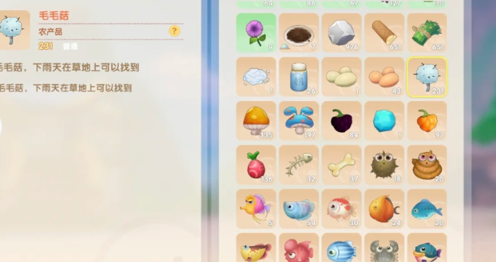 食材的稳定获取是制作毛毛菇炒蛋的基础,其中三种材料的来源各不相同且各有要求。最具挑战性的是毛毛菇的采集,这种白色团絮状的植物是一种天气限定资源,仅在游戏内的雨天出现,晴天则会消失。它主要刷新在浆果丛林、阳光牧场和开心农场这三个区域,因此玩家需要时常留意家园小屋电视机里的天气预报,在雨天及时前往采集。相对而言,鸡蛋和鸭蛋的获取则依赖于稳定的养殖系统,当玩家等级达到14级并解锁家禽小屋后,便可以在牧场商店购买小鸡和鸭子进行饲养。通过按时添加饲料保持家禽的好心情,小鸡每2小时可产一次鸡蛋,鸭子则会产出鸭蛋,从而建立起可持续的食材供应链。